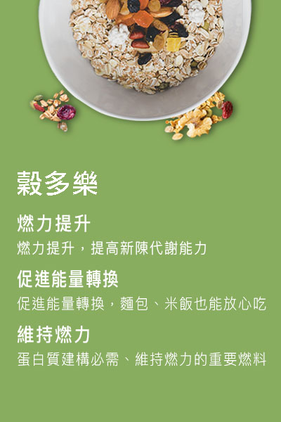 完整添加100種以上穀物,一打開就能看見真材實料! 用對身體好的天然營養元素,填補飢餓感的身體!讓身體瞬間提升活動力!讓不愛輕食的你,也能夠享受且依賴它! 另外更添加了功能性營養成分,階段性讓您無壓調整體態,促進身體能量轉換,打造健康體態!